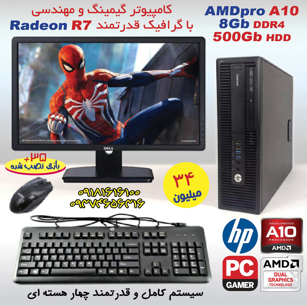 کامپیوتر کامل دسکتاپ | کیس HP EliteDesk 705 G3 | پردازنده AMD Pro A10-8770 R7