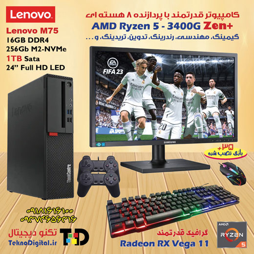 ⭐️ کامپیوتر دسکتاپ قدرتمند Lenovo M75 با کانفیگ بالا ایده آل برای گیمینگ، رندرینگ و مهندسی